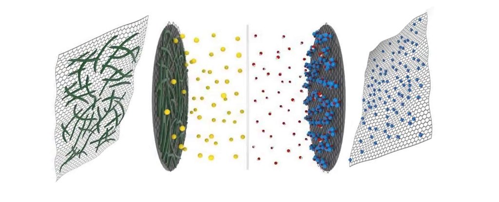 Додавањето воден раствор на јони помеѓу може да помогне во носењето на струјата. Со користење полимери базирани на графен наместо на традиционалните метални спроводници од анодата, како и со правење на катодата со распрснување на наночестички од металоксид, истражувачите успеале да ги надминат недостатоците на претходните водни хибридни кондензатори. Мрежата од мали карбонски влакна на анодата е многу поефикасна при пренесување електрони во воден раствор, овозможувајќи батерии со над сто пати поголема густина на моќност отколку претходните уреди. Што е уште подобро, новите аноди придружени со течни електролити значат дека полнењето може да трае само 20