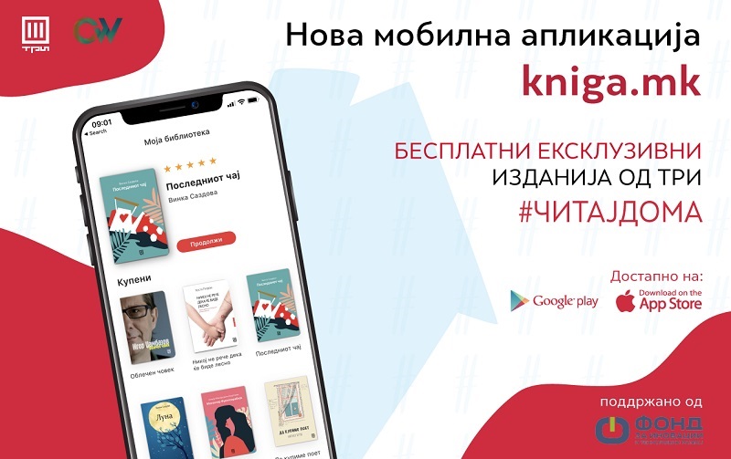 Издавачкиот центар „Три“, со цел да им излезе во пресрет на читателите во периодот на изолација, предвреме ја става во функција својата нова специјализирана апликација за читање електронски книги Kniga.mk, изработена со поддршка на Фондот за иновации и технолошки развој.