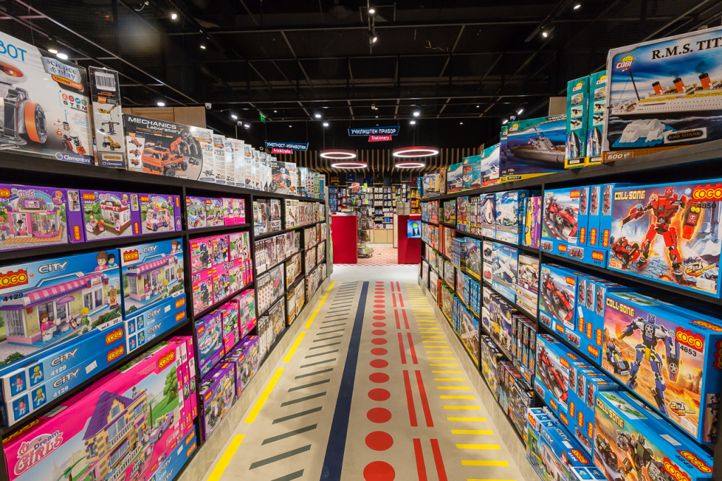 Во книжарницата има и широка понуда на играчки за деца, од 0 до 14 години, од повеќе познати светски брендови како: „Клементони“ (Clementoni), „Манопулос“ (Manopoulos), „Бонтемпи“ (Bontempi), „Коби“ (Cobi), „Креатив“ (Creativ), „Енџино“ (Engino), „Ви-кјуб“ (V-cube), „Италери“ (Italeri), „Анимал пленет“ (AnimalPlanet) и „Фор ем“ (4M).