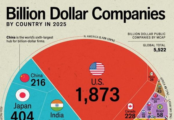 Графиконот подолу ги прикажува сите милијардерски компании во светот во 2025 година, според анализа на „Бестброкерс“.