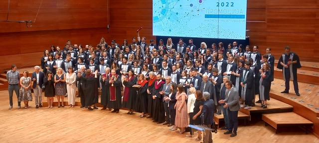 18.06.2022, Скопје - Факултетот за електротехника и информациски технологии, вчеравечер, промовираше нова генерација дипломирани инженери по електротехника и информациски технологии и нова генерација магистри. Нови 141 дипломиран инженер и 41 магистер, во зградата на Македонската Филхармонија, ги добија своите дипломи за завршен прв и втор циклус студии.