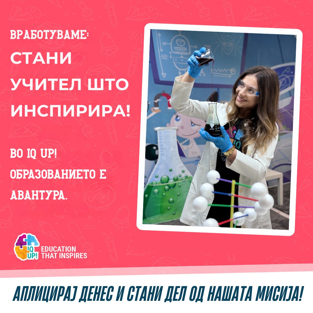 Бараме креативни, иновативни и амбициозни учители за работа во нашиот IQ UP! училишен центар во Битола.
