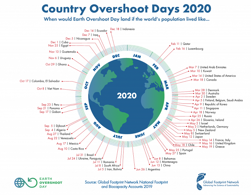 Мрежата за глобален човечки отпечаток пресметала дека денот на еколошкиот долг паѓа на 22 август, кога се преминува замислената граница на одржлива потрошувачка на Земјините ресурси и таканаречените екосистемски услуги за 2020 година.