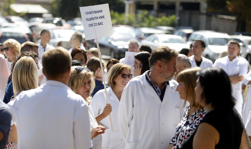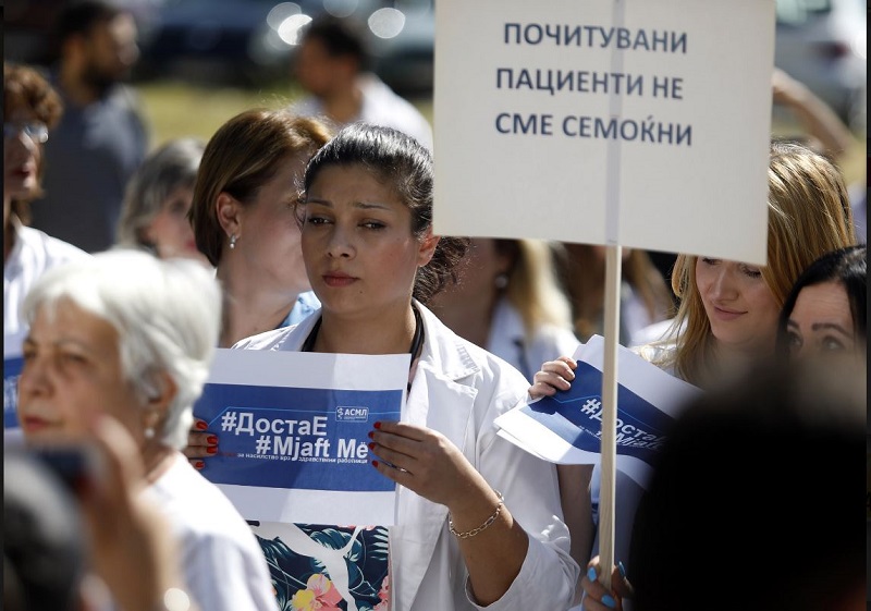 Под мотото „Стоп за насилство врз здравствени работници“ денеска претпладне во кругот на Клиничкиот центар се одржа протест во организација на Асоцијацијата на специјализанти и млади лекари, како резултат на серијата напади што се случија во изминатиот период врз медицинските работници од страна на пациенти и нивни роднини. Тие проблемот го гледаат во политичката апатија, негрижата и инертноста кон здравствениот систем, кој, велат, континуирано пропаѓа.