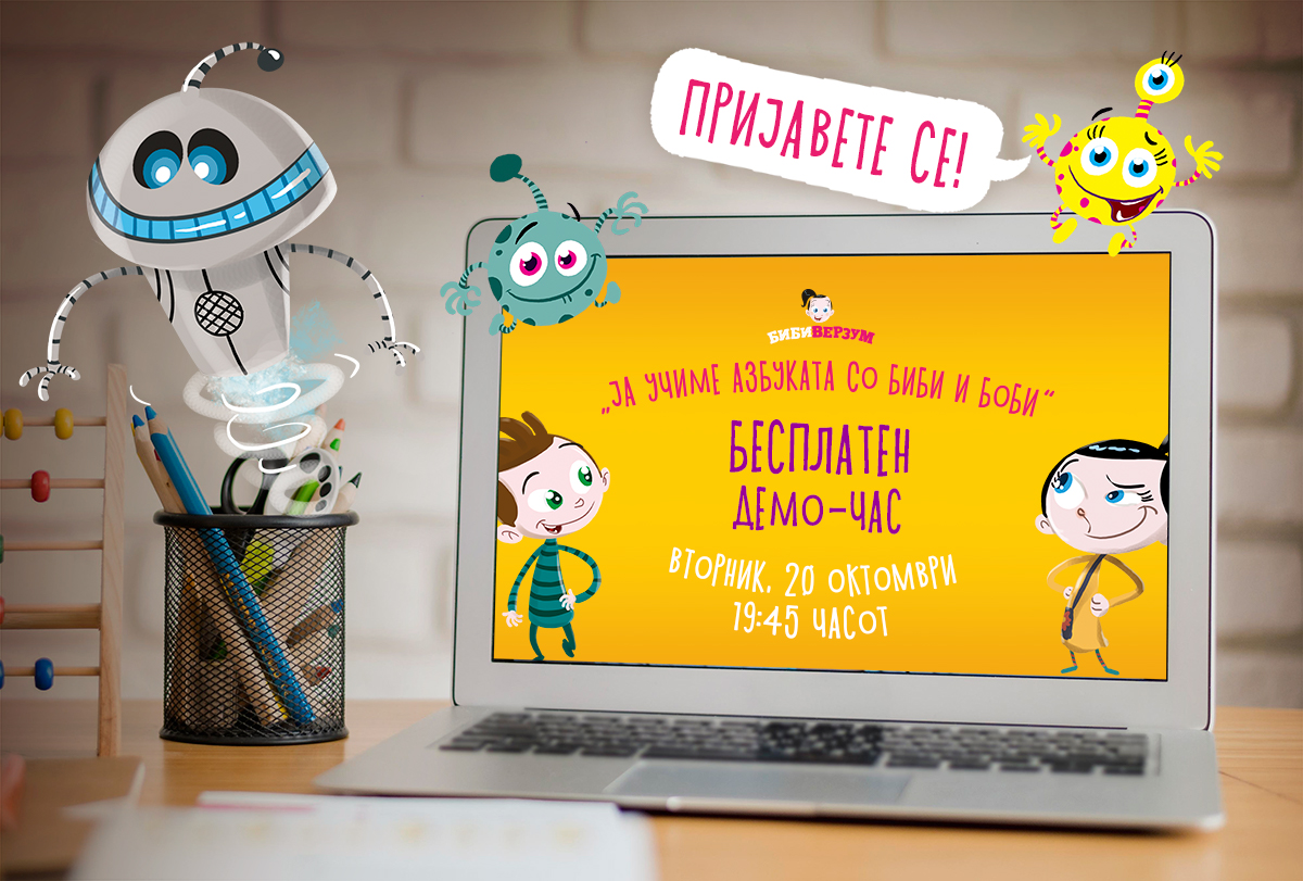 Пријавете се за бесплатен демо-час „Ја учиме азбуката со Биби и Боби“. Часот ќе се одржи во вторник, 10 октомври во 19:45 часот преку апликацијата ЗООМ. Линкот за следење на демо-часот ќе ви биде испратен на е-маил во вторник, 20 октомври. Доколку не добиете мејл проверете во spam / junk.