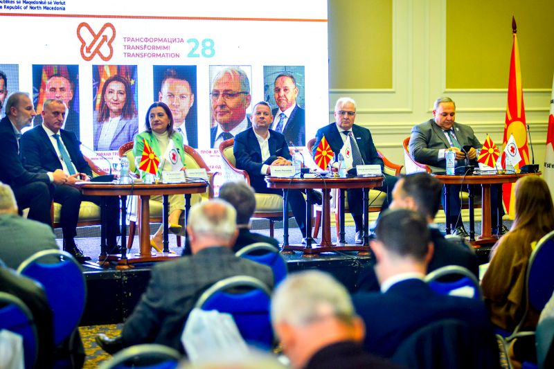 На панел-дискусијата учествуваа и министерот за здравство Фатмир Меџити; министерката за труд и социјална политика Јована Тренчевска; претседателот на Црвен крст на Република Србија, Драган Радовановиќ, и Армен Грегоријан, постојан претставник на УНДП во земјава. Развојната рамка на Црвен крст на РСМ, „Трансформација 28“, најави реформи и реорганизација на националното друштво, таргетирајќи четири области: реорганизација на инфраструктурата, односно на организациската поставеност на Црвен крст, културолошка трансформација, дигитализација, како и реорганизација на програмите на Црвен крст.