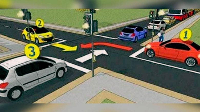 На интернет може да се најдат многу тестови, а некои ги збунуваат дури и искусните возачи. Во ситуацијата прикажана на сликата семафорите на раскрсницата не работат, а вашата задача е да одговорите на прашањето: Кој има предност?
