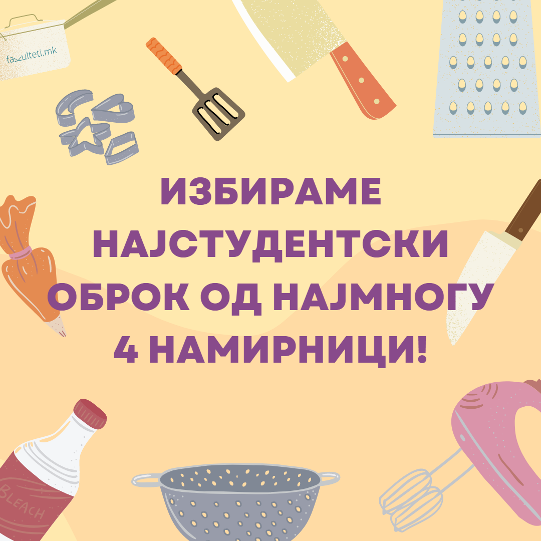 Заврши пријавувањето за изборот на најстудентскиот оброк од најмногу 4 намирници. Како што беше наведено во условите за учество, пријавувањето траеше до денес до 14 часот, а гласањето ќе трае до 25 ноември 2022 година, кога точно напладне ќе го објавиме победникот.