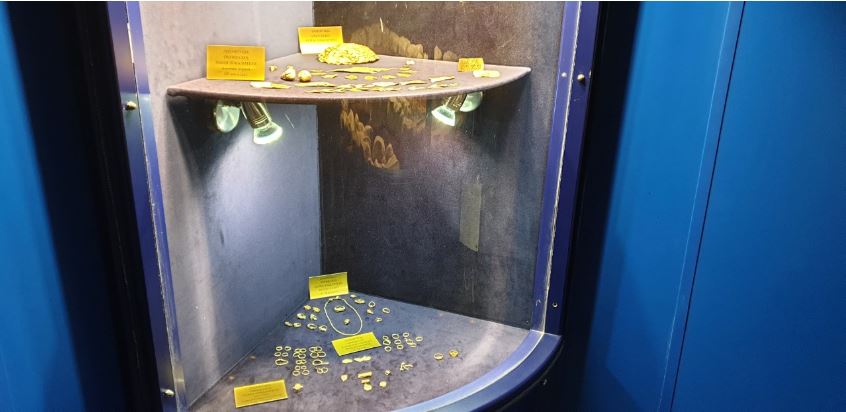 Инаку, покрај накит, во Златната соба се наоѓаат други предмети како гробни прилози, апликации, монети, делови од облека… Тука се и познатите златни обетки во форма на гулабици од 3-2 век пред нашата ера, златната ромбоидна плочка, златниот колан со потекло од архајскиот период и други предмети.