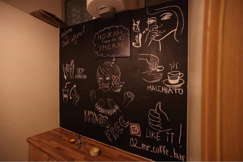 „О2 МР кафе-бар“ не е обично скопско кафуле, туку со себе носи една голема мисија - да ги искорени стереотипите во нашето општество и да придонесе за подобар соживот на сите. Тоа е прво знаковно кафуле. Овде се нарачува кафе со знаковен јазик или покажувајќи со прст на дигиталното мени со видеа од пијалаците на знаковен јазик.