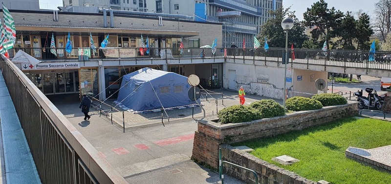 - Регионот Венето е еден од регионите што имаат најефикасно организиран здравствен систем во Италија. Како таков, ги стави на располагање сите материјални, финансиски и човечки ресурси за да се справи со оваа досега незапаметена епидемија. Се зголеми бројот на места во одделенијата за интензивна нега, се одреди во кои клинички центри ќе бидат згрижени позитивните пациенти, се потенцира до максимум медицинскиот персонал со нови вработувања по итна постапка, со помош на Телото за цивилна заштита на Италија. Во атарот на сите болници се монтирани шатори кои служат како примарни прифатни центри на пациентите со симптоми на инфекција од коронавирус, каде што им се зема брис од нос и од грло и се испраќаат на тестирање во микробиолошка лабораторија. Овие пунктови се отворени со цел да се растоварат службите за брза помош, кои примаат и пациенти со друг тип болести од итен карактер, од типот на политрауми и сл.