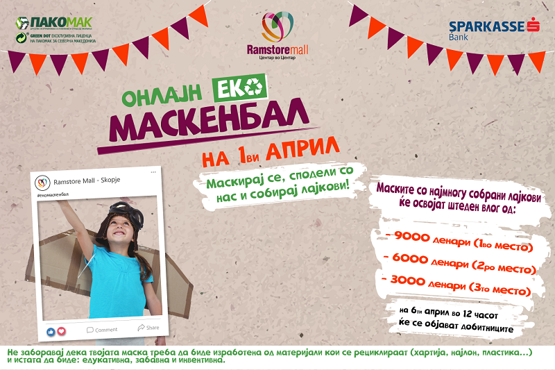 Традицијата продолжува, првоаприлскиот ЕКО маскенбал во организација на „Рамстор мол“, „Пакомак“ и Шпаркасе банка, на огромно задоволство на сите родители и деца, и оваа година ќе се одржи, но во едни поинакви услови.
