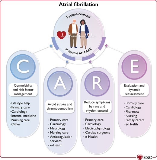 Главниот концепт кој ги води овие насоки е AF-CARE – пристап кој се фокусира на пет столба за третман на атријалната фибрилација: управување со коморбидитети и ризик-фактори, превенција на мозочен удар, контрола на срцевиот ритам и фреквенција, евалуација и следење на терапијата, како и активно учество на пациентите во целиот процес. Овие нови насоки го нагласуваат холистичкиот и персонализиран пристап, кој ги вклучува сите аспекти на здравјето на пациентите.