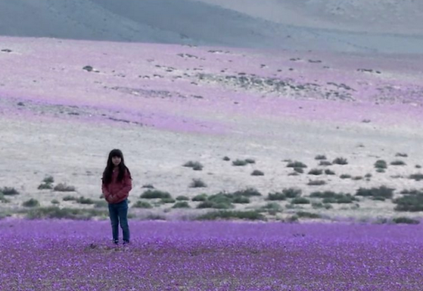 Чилеанската пустина Атакама, најсувото место на планетата, неодамна беше покриена со бели и виолетови цветови по раниот дожд.