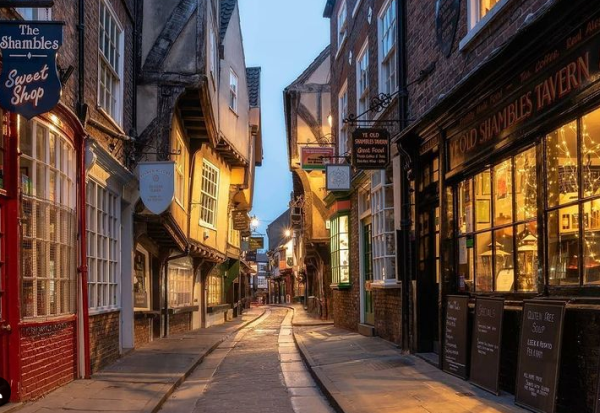 Улицата „Шамблс“ во англискиот град Јорк сѐ уште го има оној средновековен шарм.