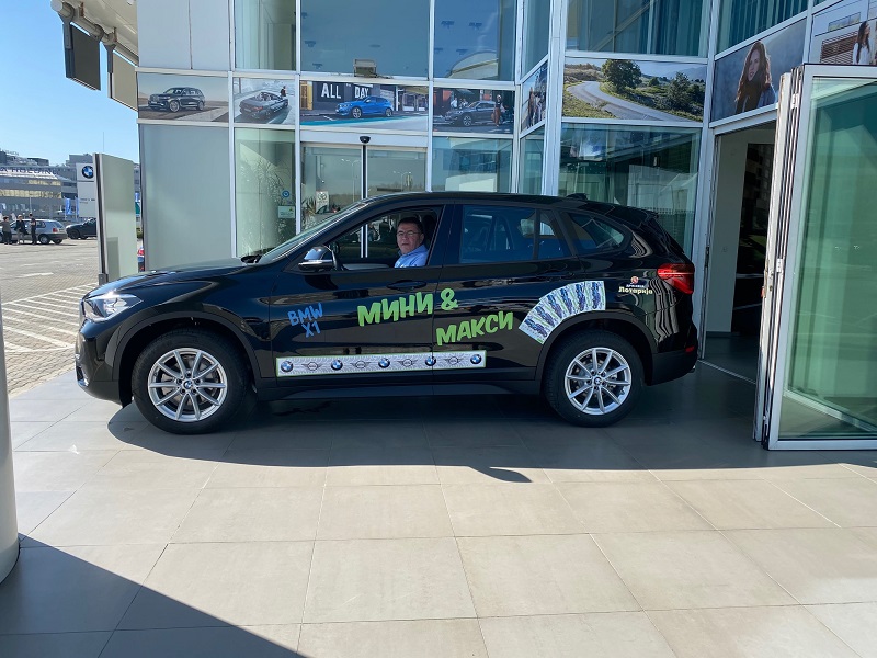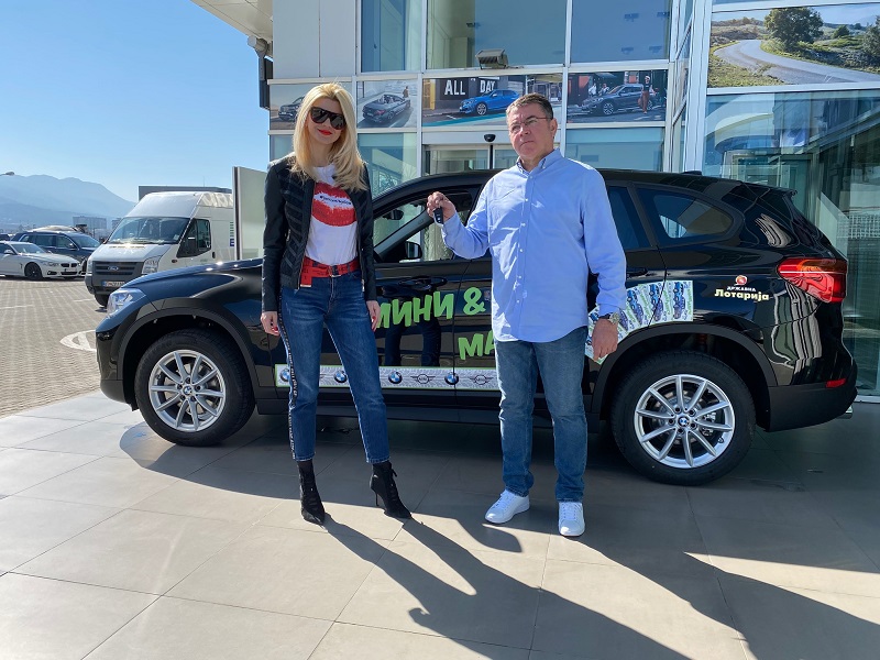 Пред салонот М-Кар доделивме уште еден автомобил „бе-ем-ве“ X1 од инстант-лозот Мини и Макси.