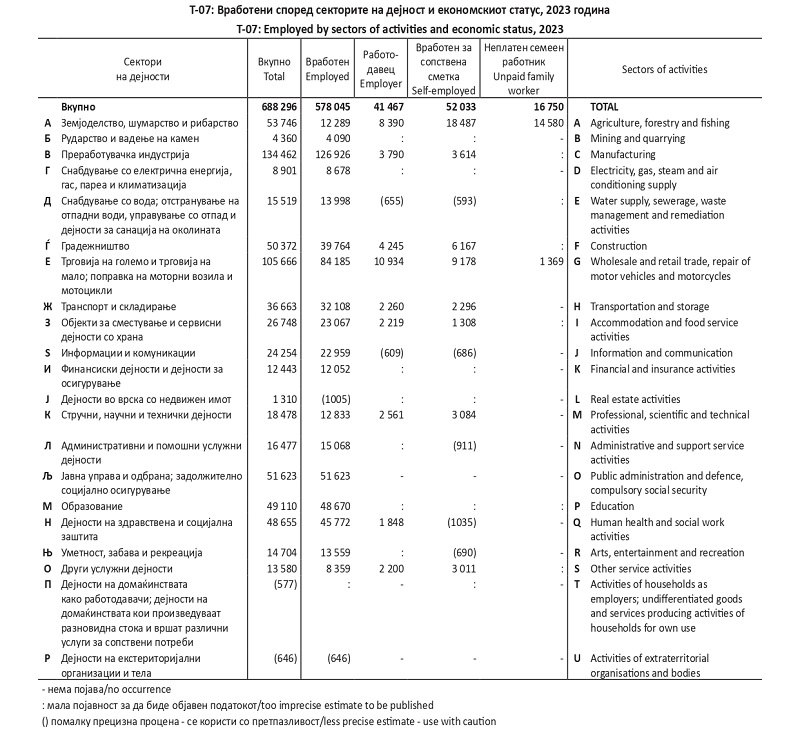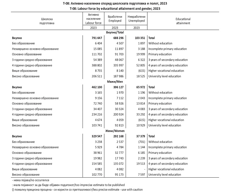 Податоците на ДЗС покажуваат дека најголем дел од вработените, односно 335.997 лица се со 4-годишно средно образование, по што следуваат оние со високо образование, чиј број е 187.986, па оние со основно (91.703) итн.