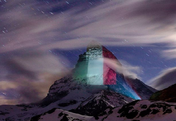 Од 24 март наваму на врвот Матерхорн се прикажуваат знамињата на Франција, САД, Јапонија, Германија, Индија, Велика Британија, Португалија, Шпанија и многу други.