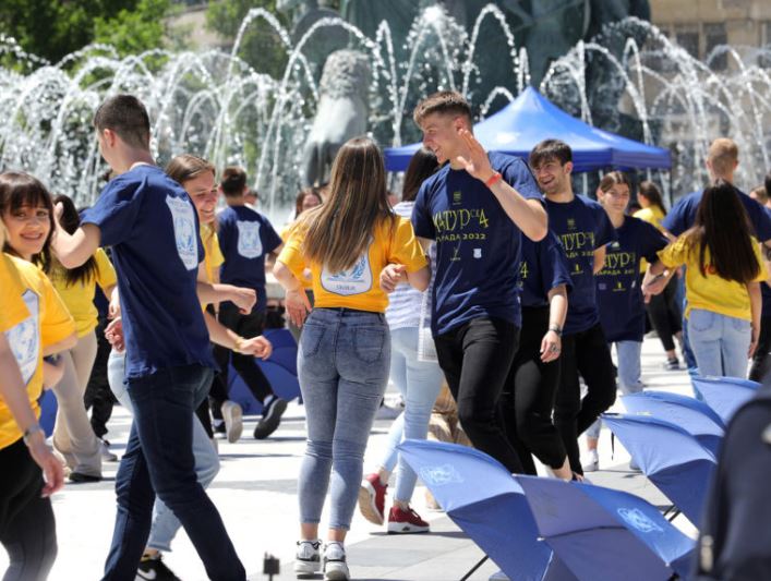 По двегодишна пауза поради пандемијата на коронавирусот, матурантите од 14 училишта од Скопје денеска повторно зедоа учество на „Матурската парада“, на плоштадот „Македонија“.