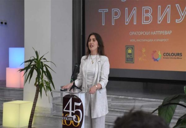 - Студент сум на Економскиот Факултет во Прилеп, на насоката сметководство и ревизија и со гордост би сакала да го споделам моето незаборавно искуство од учеството на ораторскиот натпревар. Морам да признаам дека за мене ораторството беше вистинско излегување од комфорната зона. Благодарение на УКЛО Тривиум открив нешто ново за себе - љубовта кон говорот пред публика. Натпреварот ми помогна да се стекнам со самодоверба, комуникациски вештини и нова перспектива за мојот личен и професионален развој. Ораторството, според мене, е дисциплина што бара посветеност, култура во говорот и способност преку збор да се пренесе емоција. Верувам дека вештината да се зборува од срце, но и со одговорност е нешто што секој студент треба да го развива. Затоа ги охрабрувам и студентите и професорите активно да се вклучуваат во воннаставните активности бидејќи тие искуства создаваат вредни спомени што ќе се паметат долго по завршувањето на студиите. Искрена благодарност упатувам до проф. д-р Билјана Граматковски од Педагошкиот факултет во Битола, чија неизмерна поддршка и насочување ме мотивираа да излезам пред публиката гласно, со страст и самодоверба. Единствено оние студенти кои ја препознаваат важноста на ваквите искуства и храбро се соочуваат со предизвикот се тие што навистина растат и како личности и како идни професионалци.