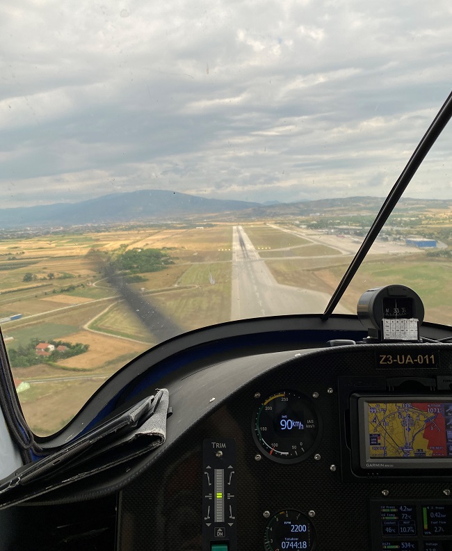 - Знае да се погоди таква недела да летам секој ден, вклучувајќи го и викендот, но понекогаш може да се случи и да летам само еден ден во неделата, а тоа зависи од временските услови. Летањето на почетокот на обуката е само зонско над Скопје, односно над аеродромот бидејќи во тоа време се изучуваат основните пилотски техники и вештини и студентот-пилот се запознава со воздухопловот, но како што поминуваат часовите, тој зонски обрач се проширува и веќе летаме насекаде низ Македонија, притоа слетуваме на сите аеродроми што ги имаме. Ние, македонските студенти-пилоти, имаме голема среќа бидејќи освен на спортски аеродроми, имаме можност да слетуваме и на интернационалните во Скопје и во Охрид, што не е случај во другите поголеми држави каде што сообраќајот на аеродромите е погуст, па така шансите на студентите таму да се здобијат со такво искуство се помали. Што се однесува до тоа какво е чувството да се биде во височините, јас немам некој соодветен одговор бидејќи искрено никогаш и немам размислувано на таа тема. Секогаш кога ќе се качам во авион, се исклучувам од цел свет, па дури ги исклучувам и чувствата и целосно му се посветувам на авионот и на тој лет, бидејќи како што вели мојот инструктор, ние треба да летаме пред авионот, а не да одиме зад него и да ги поправаме неговите грешки. А за да го направиме тоа, потребно е да ги оставиме чувствата настрана и да се сконцентрираме само на летањето и на ништо друго, така што единствено нешто што постои горе и за кое сум свесна е слобода која не можам да ја споредам со ништо друго.