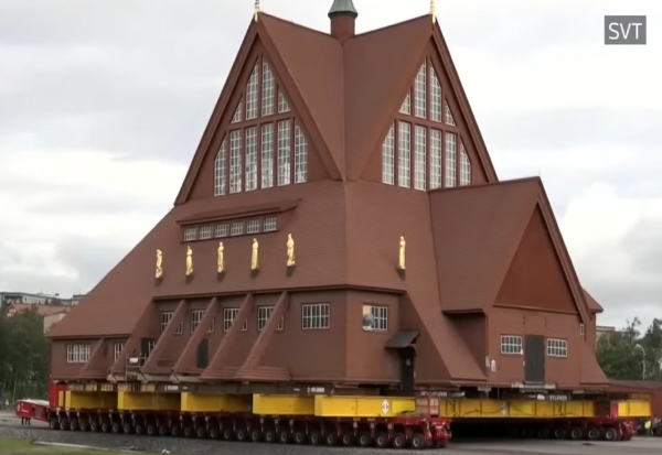 Историската дрвена градба во градот Кируна, изградена во 1912 година, беше поставена на гигантски подвижни платформи. Преселувањето од едниот до другиот крај на градот траеше два дена.
