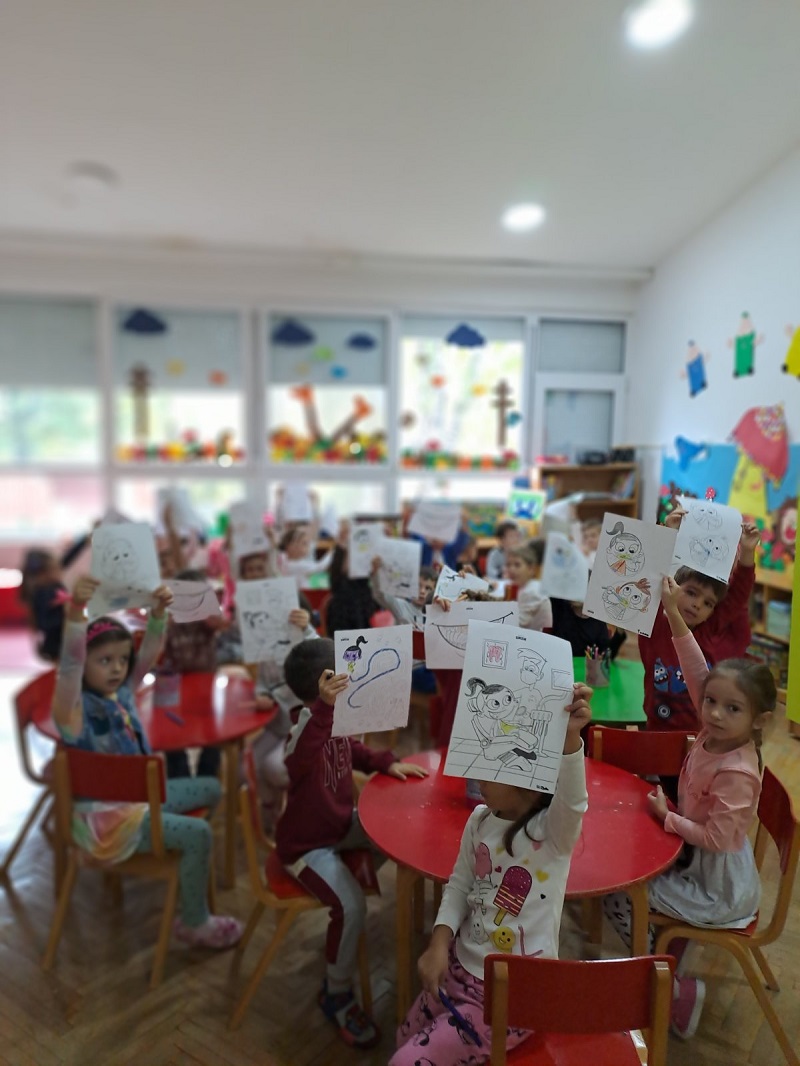За таа цел, специјалисти по детска и превентивна стоматологија одржаа работилници во градинките во скопската населба Ѓорче Петров поддржани од „Светот на Биби“, каде што беа изготвени презентации со Биби, Боби и другите ликови соодветни за дечињата, а беа обезбедени и материјали за боење.
