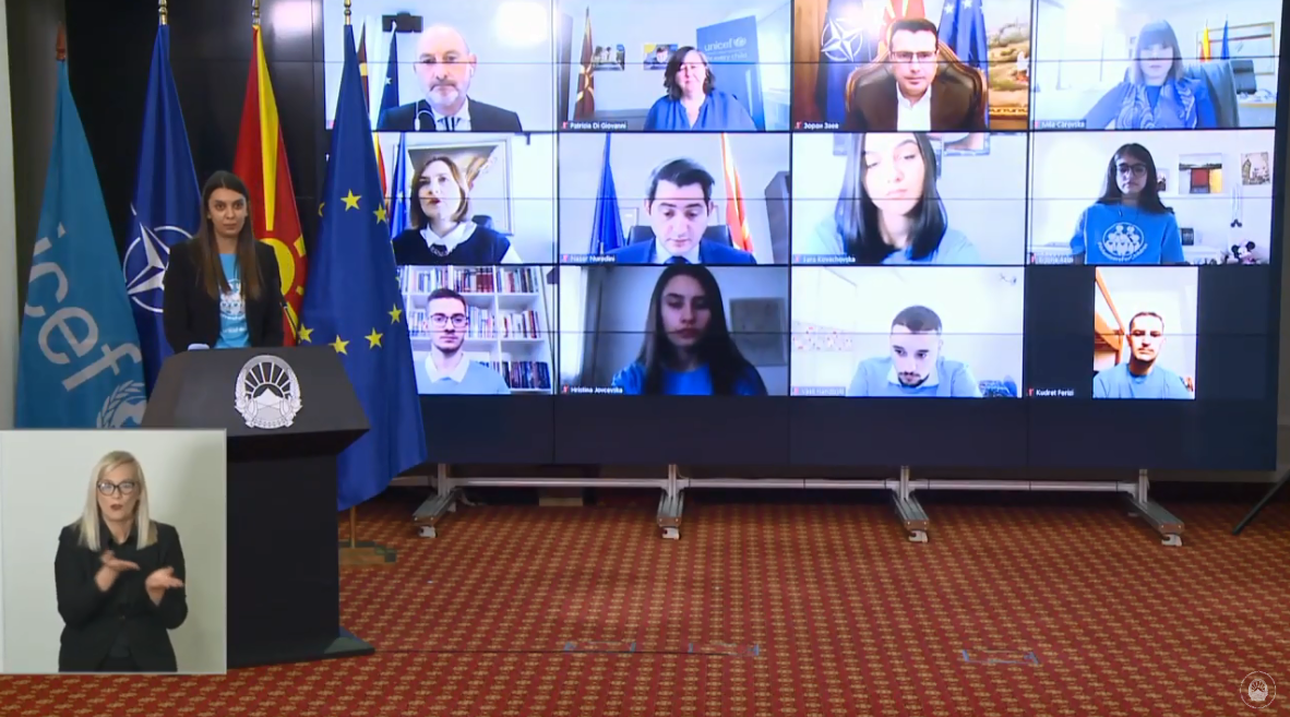Состанокот на младите со Владата го организира УНИЦЕФ, во рамките на одбележувањето на 31-годишнината од донесувањето на Конвенцијата за правата на децата на Обединетите нации. Учесниците преку видеоконференциска врска ги поздрави премиерот Зоран Заев, кој рече дека конвенцијата е најшироко ратификуваниот документ во цел свет. Тој се осврна и на образованието.
