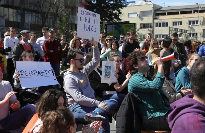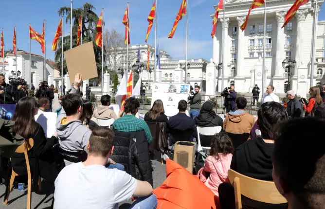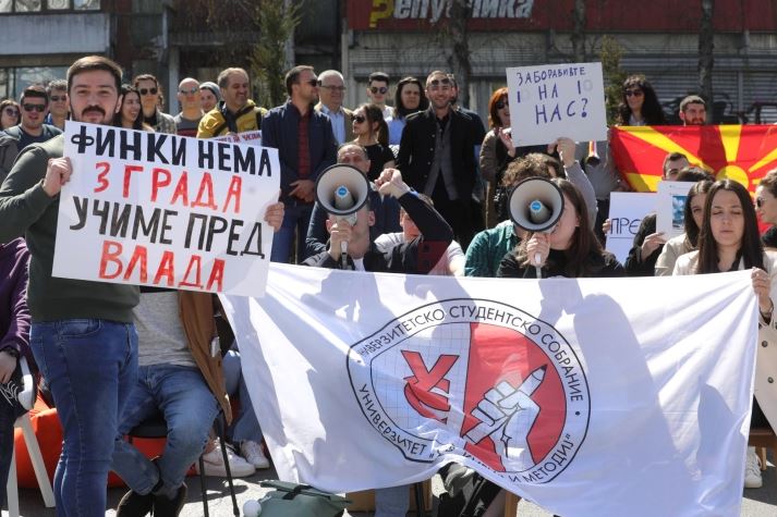 На протестот под мотото „ФИНКИ нема зграда - учиме пред Влада“, студентите поставија импровизирана училница со цел да привлечат внимание за нерешните просторни услови.