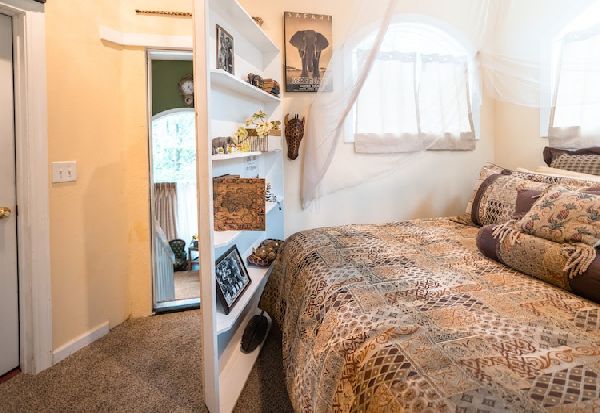 Собата е опремена со библиотека до која имате пристап само ако отворите една посебна книга што се наоѓа на полиците. Откако ќе ја отворите, ви се отвора врата што ве води до прекрасна удобна библиотека.