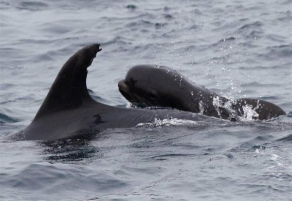 Во близина на брегот на Нов Зеланд група морски биолози откриле дека делфин-мајка од видот „Tursiops“ посвоила младенче од кит од видот „Globicephala“.