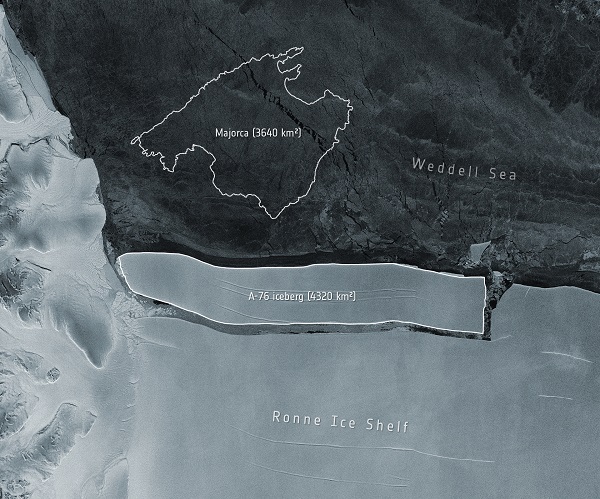 Се отцепи најголемата санта мраз од Антарктикот, 80 пати поголема од Менхетн, Њујорк. Сантата мраз се отцепи во морето Ведел, известија од Европската вселенска агенција.