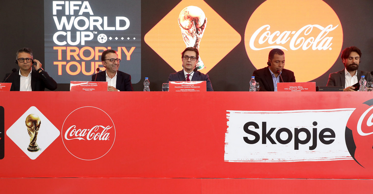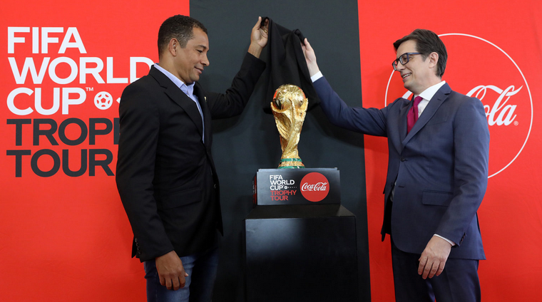 Оригиналниот и единствен златен трофеј од ФИФА Светското првенство денеска беше претставен во Скопје. Првпат во македонската фудбалска историја, нашата земја е дел од петтата турнеја на трофејот организирана од „Кока кола“, официјалниот спонзор на настанот.