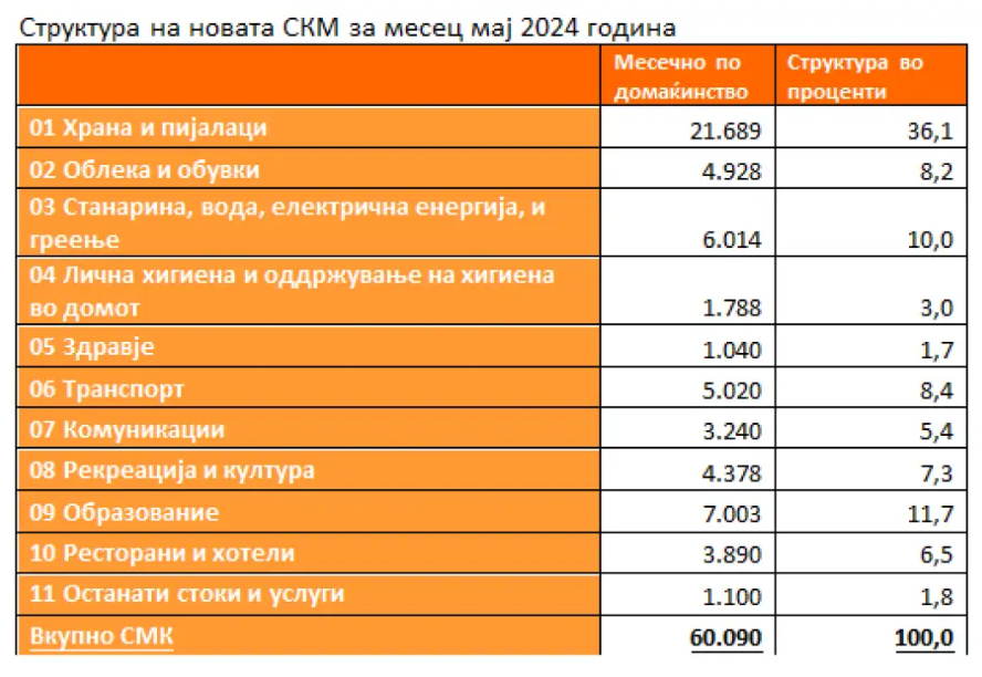 Вредноста на синдикалната минимална кошница за месец мај 2024 година изнесува 60.090 денари, информираат од ССМ.