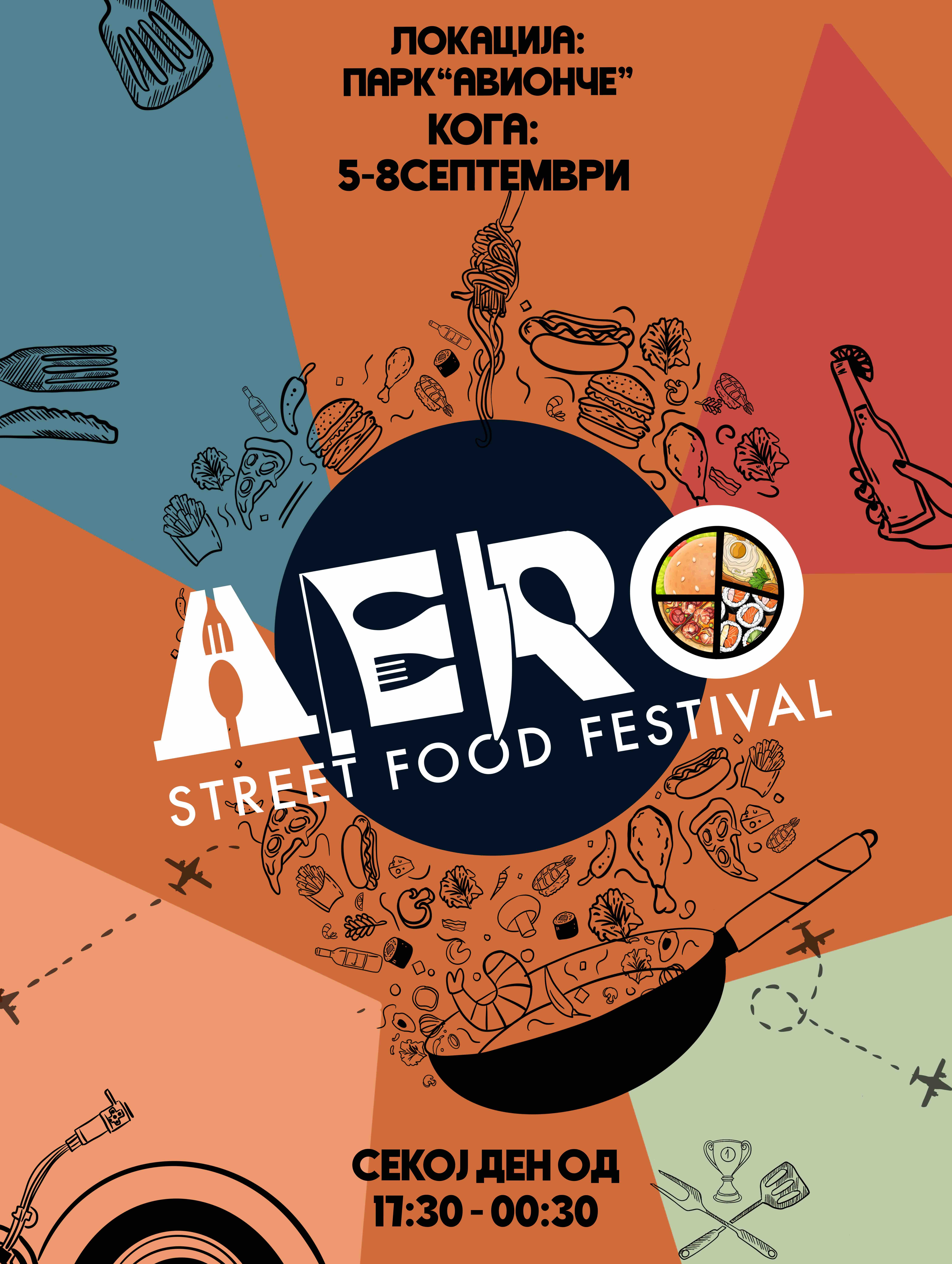 Од 5 до 8 септември во паркот „Авионче“, Општина Аеродром, ќе се одржи првиот AERO Street Food Festival, настан кој ќе ги обедини најдобрите улични гастрономски брендови со урбана музичка програма и забавни активности за сите генерации, а влезот ќе биде бесплатен.