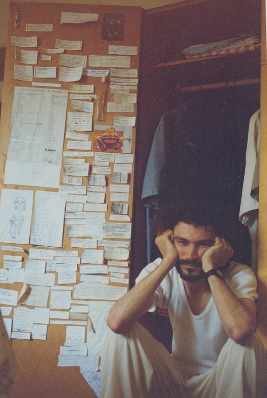 - Во собата имавме стар шифоњер кој, освен за чување алишта, ни послужи за уште една намена. Не знам како сето тоа започна, но стана обичај секогаш кога еден од нас ќе се вратеше во собата, да земе парче хартија и да запише некоја досетка, афоризам или некаков коментар, нешто што го акцентира или заокружува денот и да го залепи на внатрешната страна од вратата на шифоњерот. Сите гости имаа обврска да ја отворат вратата и пред да се фрлат на читање и смеење, да се запишат на списокот со пријателите што доаѓаат првпат. Тоа беше нашата аналогна социјална мрежа, нашиот „протофејсбук“. За кратко време се собра доста материјал. Некој дојде до идеја да се издаде во форма на книга со фотографии, ама сфативме дека тоа функционира само таму, на „ѕидот“ во шифоњерот – раскажува Бранислав.