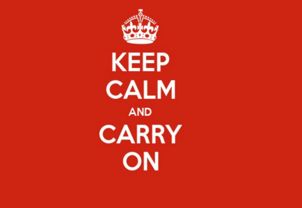 Пролетта 2000 година, во кутија со прашливи книги во антикварницата „Бартер букс“ во британскиот Нортамберленд, беше откриен плакат од Втората светска војна кој никогаш не ја реализирал својата првична цел. Црвен дизајн, бели букви и круна во стилот на Тудорите, со едноставната порака „Keep Calm and Carry On“ („Остани смирен и продолжи“), за брзо време го освои светот, претворајќи се во еден од најпрепознатливите слогани на 21 век.