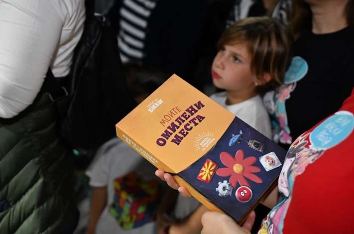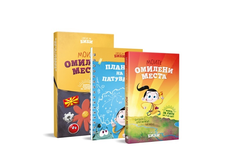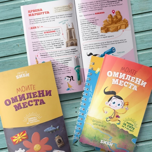 - Еј, другарчиња, ова е книга за моите омилени места! Во првиот дел раскажувам за местата што ми се омилени во Скопје и неговата околина, а вториот и третиот дел се дневници од две големи патувања што ги направивме со мама и тато. Отворете ја оваа книга, научете многу нови работи, потсетете се на нештата што ги знаете, патувајте и забавувајте се заедно со мене! - им порачува Биби.