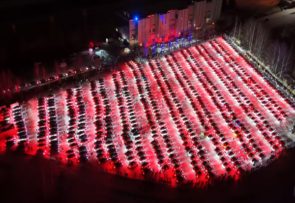 Минатата сабота се собраа вкупно 687 автомобили „тесла“, кои се паркираа на истиот паркинг, а потоа истовремено се вклучија во голем спектакл на песната „Sandstorm“ од финскиот диџеј Даруде.