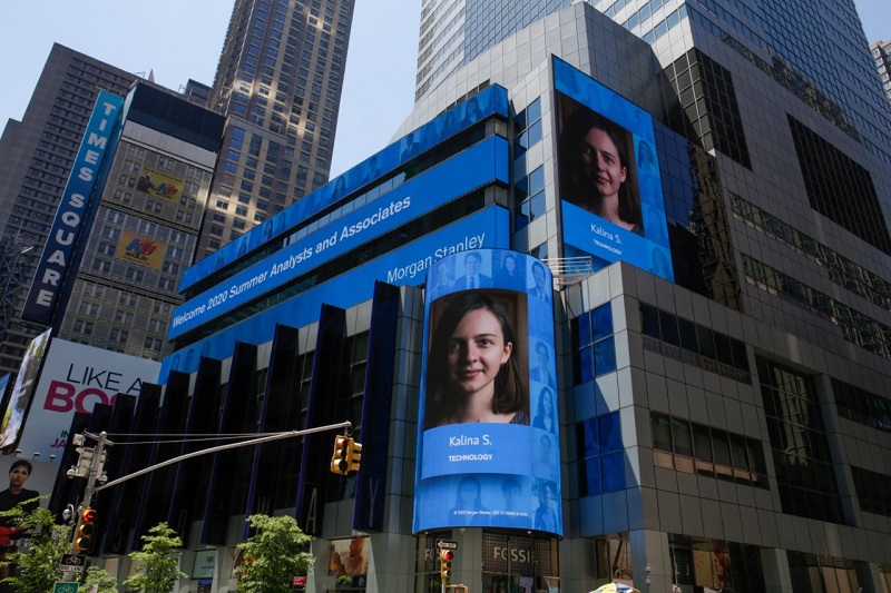 - Од „Морган Стенли“ одлучија да го покажат своето уважување на напорите на практикантите преку јавно објавување на наши слики на своите дисплеи на Тајмс сквер во Њујорк. Интересно е што во 2017 година стоев на истото место во Њујорк, пред седиштето и билбордите на „Морган Стенли“. Не ни знаев која е таа банка, ниту, пак, дека по три години ќе бидам нејзин практикант. А дека мојата слика ќе биде објавена на Тајмс сквер, ниту на сон!