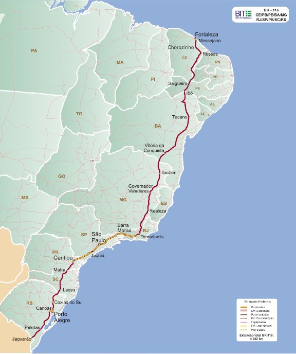 Со 4.385 километри, ова е најдолгиот автопат во Бразил и основна сообраќајница која поврзува 15 најважни градови во оваа земја. Автопатот, всушност, е во прилично добра состојба - рамен и релативно добро одржуван. Меѓутоа, познат е и како „Автопат до пеколот“ бидејќи минува низ некои од најлошите бразилски квартови во кои владеат криминални групи, каде што постои силен проток на дрога и проституција...