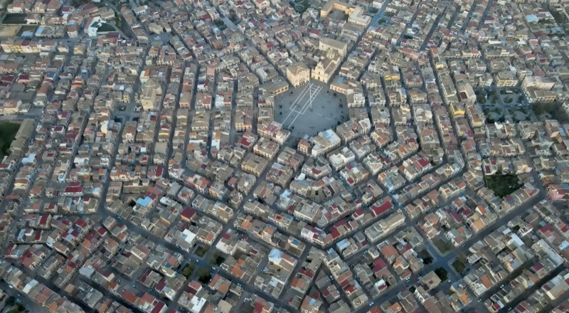 Далеку од морето и туристите кои бараат „џелато“ со пастелни бои, ова мало барокно гратче е уникатно по својот совршен шестаголен распоред, поради што често се нарекува „геометриски град“, „хексагонален град“ или едноставно сицилијански „идеален град“.