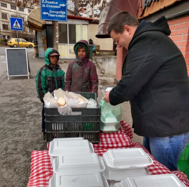 Со помош на Црвениот крст и волонтери, запуштена барака претвориле во народна кујна. Во првите шест месеци поделиле 6.500 оброци. Досега хуманите граѓани им донирале околу 23.000 оброци на социјално загрозени лица за помалку од три години, вели Трајче Мешков