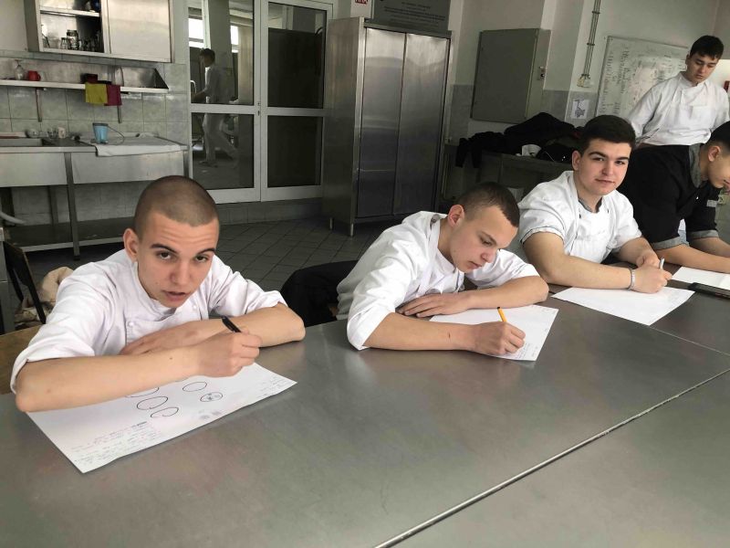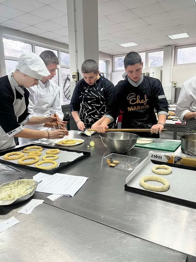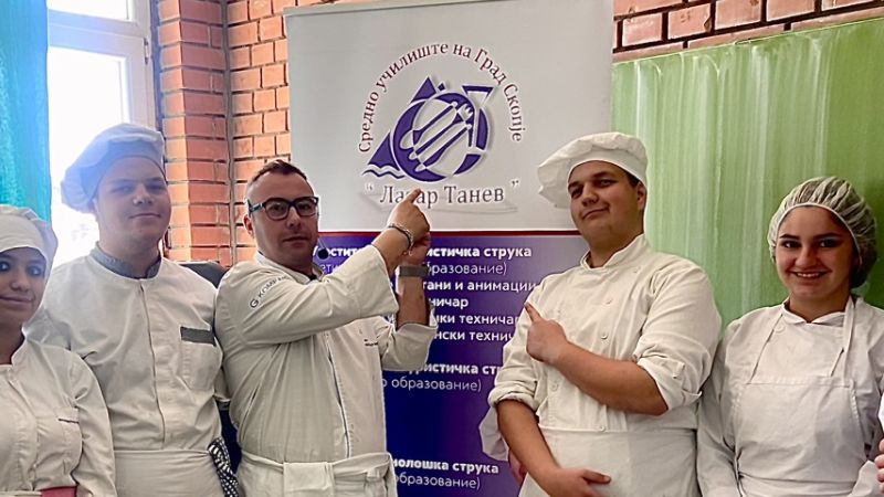 - Тука се извршува училишната пракса каде што учениците практично изведуваат вежби, учат техники од областа на готварството, слаткарството, пекарството, месарството, агенциското и хотелското работење и послужувањето. Во училиштето имаме занимања од тригодишното образование, и тоа: готвачи, слаткари, келнери, пекари, месари и четиригодишно образование и тоа: угостителски техничари, хотелско-туристички техничар, техничар за анимации и настани и хотелско-ресторански техничар. Учениците учествуваат и во реалниот сектор со извршување практична настава согласно наставната програма, и тоа во угостителско-туристички објекти во градот, во државата и во странство. Училиштето предвидува редовна пракса во текот на наставната година, феријална пракса во текот на летото. Посебно морам да ги нагласам теоретските предмети во кои се посветува големо внимание на секој ученик. Училиштето работи на проекти, на пример, проектот за меѓуетничка интеграција и образование, проекти според Еразмус програмите, посебни образовни програми за лица со попреченост според програмите за инклузија и друго - ни споделува Дејан.