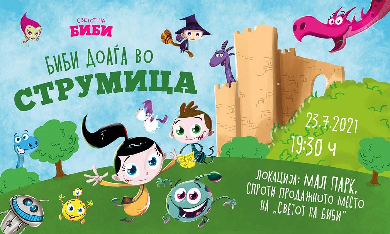 Биби го продолжува своето патување, следна е Струмица! Настанот ќе се одржи утре, 23 јули, со почеток во 19:30 часот. Локацијата е веднаш спроти катчето на „Светот на Биби“ во Струмица, во малиот парк. Децата и нивните родители, роднини и пријатели ќе играат на хитовите од првата македонска анимирана серија за деца и ќе имаат можност во живо да ја запознаат хероината Биби.