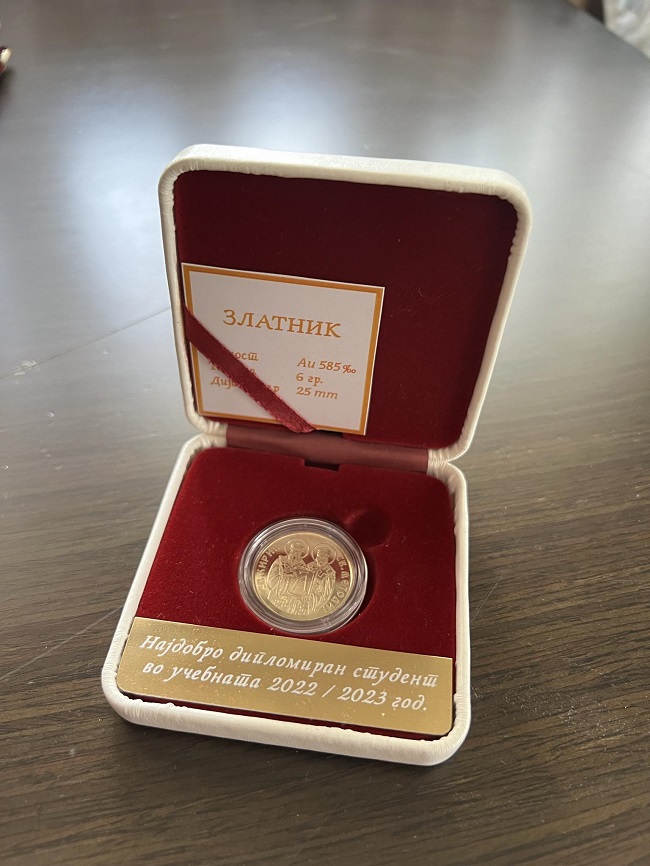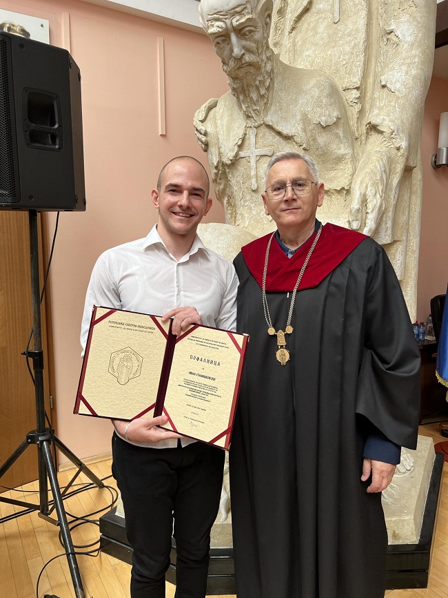 - Голема чест ми е да кажам дека сум дел од овогодишните најдобро дипломирани студенти во учебната 2022/2023 год. Наградата за најдобар студент на УКИМ е голем успех кој го потврдува трудот вложен во самите студии. Ова признание служи како голем мотив за продолжување на образованието. Сите освоени стипендии, награди и сертификати што ми беа врачени во текот на моите студии се имаат отсликано врз мојот персонален развој, но и раст во самата кариера како инженер за животна средина. Сите дополнителни успеси со кои можеме да се одделиме од другите ни отвораат врати кон нови можности и цели - споделува Иван.