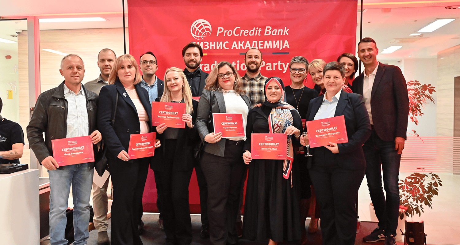 Со свечена церемонија и завршен коктел, ПроКредит Банка ја заокружи првата генерација од ПроКредит Бизнис-академијата– едукативна програма создадена за унапредување на знаењата и капацитетите на локалните компании. На настанот, 90 учесниците добија сертификати за успешно завршена обука и посветеност во процесот на учење и личен развој.