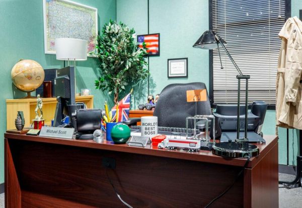 „Букинг“ нуди уникатно искуство: ноќевање во најпознатата канцеларија. Повторно создадената канцеларија се наоѓа во Вашингтон и го вклучува сето она што можеше да се види во серијата, од канцеларијата на Мајкл Скот, преку конференциската сала и работното место на Пем, до познатиот магацин и фармата на Двајт.