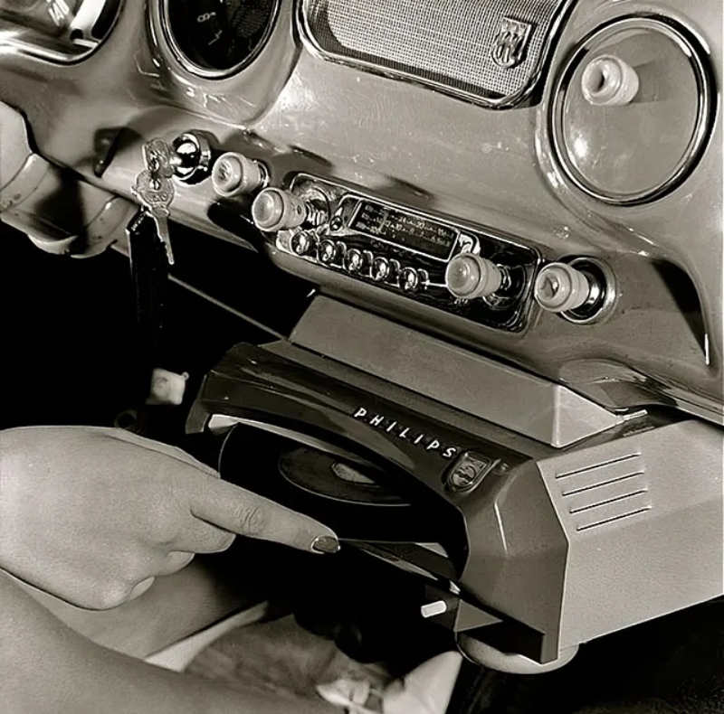 Инспирирани од успехот на автомобилските радија, производителите на автомобили во 50-тите години се обиделе да донесат уште една домашна забава во автомобилот - грамофон.