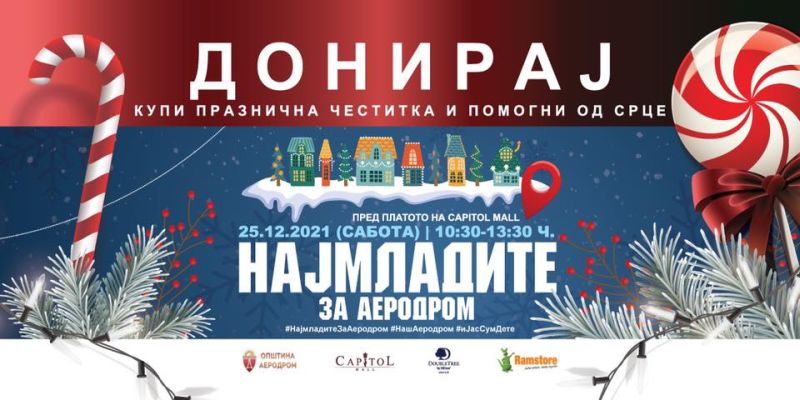 Предновогодишната хуманитарна забава „Најмладите за Аеродром“ ќе се одржи в сабота, 25 декември, од 10:30 до 13:30 часот на платото пред трговскиот центар „Капитол мол“.